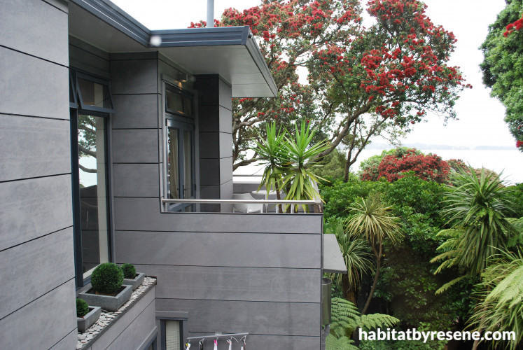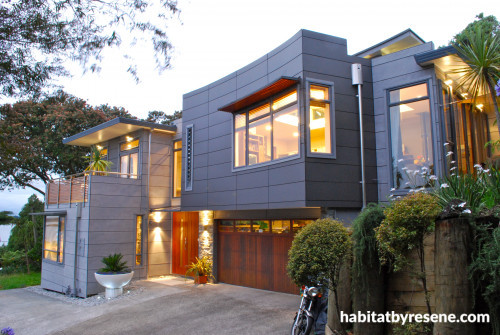 It's easy to see why it was the location that first attracted Wayne and Pat to their home: surrounded by native bush (including two huge pohutukawa trees), it also has wide sea views. They bought it brand-new from a developer 13 years ago, and only found out that it was a leaky building in 2007. The discovery came as a complete shock, particularly as it required some parts of the house to be totally rebuilt. Rather than be discouraged, Wayne and Pat gave their home a radical makeover which included re-cladding the exterior with concrete-coloured Eterpan panels, and re-painting the entire interior of the house. The result is a modern-looking home that Wayne and Pat love living in again.