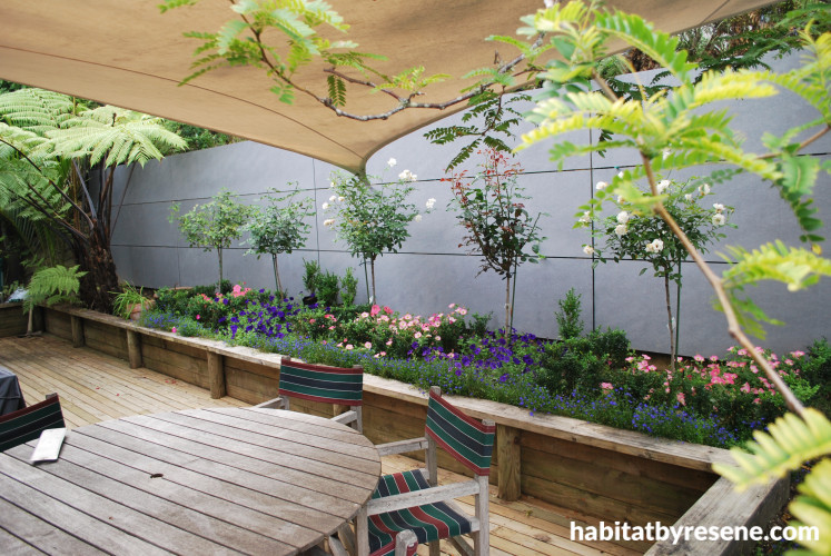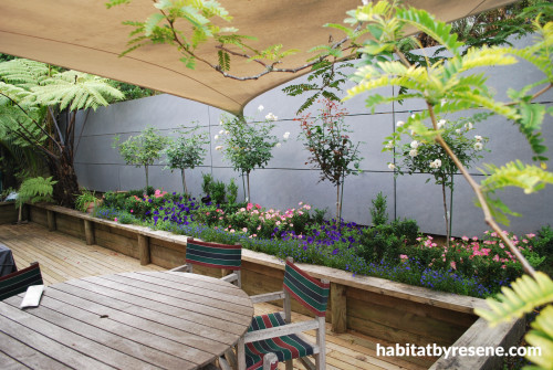 The garden wall is also constructed using Eterpan cladding, while the decking itself is pine.