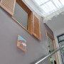 A shuttered window looks onto the internal stairs, where the wall has been painted with Resene Half Felix.