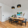 Tim & Arthur painted the walls, trim, and ceiling in their dining space in snowy Resene Black White. They added pops of colour through vibrant artwork and their choice of décor.