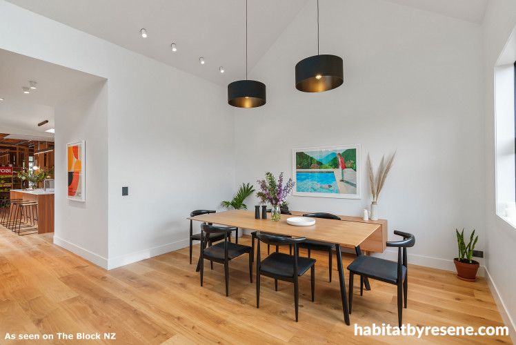 The teams were busy cooking up some creative designs on Three’s The Block NZ this week as they tackled their kitchen & dining rooms. With a packed schedule and grand rooms to finish, the teams worked hard to create elegant kitchens with a dash of snowy Resene Black White and a splash of fresh Resene Barely There.