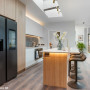 The judges were impressed by the scale of the space. “I feel happy,” says Chris, who thought their splashback was elegant and simple. “This feels really well pulled together. It’s simple, there’s nothing overly complex about what they’ve presented.” Lauren thought they had done a good job with their minimalist design and that the team had executed it really well. Ann-Louise said the kitchen was a great sized family space and loved the splash of colourful artwork in the dining room. Overall, all three judges agreed that Tim & Arthur had created a warm, functional kitchen with great natural light.