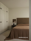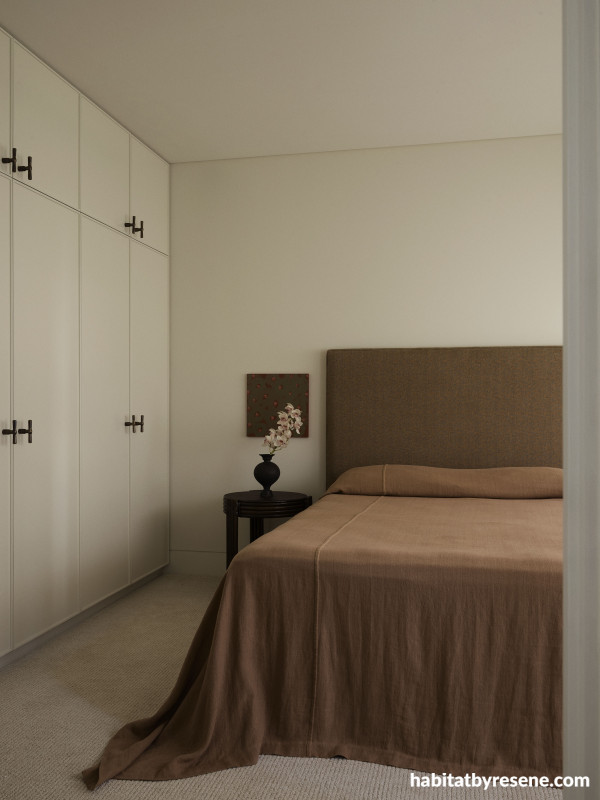 The walls, ceiling and joinery in the second bedroom are painted in Resene Double Rice Cake, complementing the earthy toned bedding.