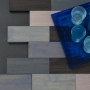 Bricked in blue with Resene Woodsman stains in Resene Pitch Black, Resene Bleached Cedar, Resene Pickled Bluewood, Resene Limed Ash and Resene Riverstone.