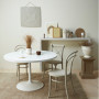 Combine throwback style with timeless cool in this charming casual dining room. The neutral walls of Resene Half Spanish White and floor colour of Resene Colorwood Whitewash set the perfect stage for bold, clever colours that add a touch of whimsy within a mature palette of rust and beige. The statement cane chair is brought to life with Resene Sunbaked, a versatile colour inspired by the rich shades of the Mojave desert. This on-trend burnt terracotta colour is a perfect in-between for rooms that need a punchy colour with an unexpected twist on a classic shade.