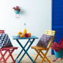 A fantastic way to perk up a drab courtyard, use three strong summery colours to repaint your outdoor furniture instead of just the one. This gives your setting an eye-catching out-of-the-square look and makes it easy to update – next year, simply repaint one of the chairs for a whole new look.