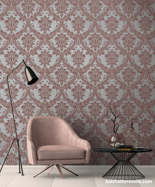 Going traditional doesn’t necessarily mean playing it safe. Papering your walls in a regal damask wallpaper, such as Resene Wallpaper Collection 24115, is an excellent way to embrace your classical side and still incorporate colour in your home. Damasks have a rich and timeless quality and come in reds, blues, greys or fashion colours to suit your style and furniture. If you’re after a more modern take on the traditional style, use classic damask wallpaper as a feature wall with surrounding walls in crisp Resene Merino. Team it with contemporary furniture, such as a minimalist dining table painted in Resene Noir or a chic leather sofa. Heavily patterned wallpapers such as Resene Wallpaper Collection 24115 are also perfect for disguising less than perfect walls.