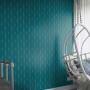 Resene Wallpaper Collection 620924 adds vibrancy to this bedroom with its Art Deco geometric pattern and luxurious dark aqua colour. Try pairing Resene Wallpaper Collection 620924 with a ceiling and trim in Resene Quarter Foggy Grey. For an elegant look that makes the colour pop, try a trim in Resene Double Cod Grey.