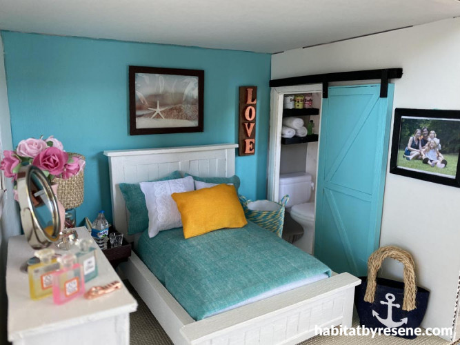 Zoe’s winning home featured all of her favourite things including an underwater room decorated with Resene Wallpaper Collection E378032 and fish made by Zoe out of polymer clay and painted in Resene colours. The disco room is painted in Resene Indian Ink with assorted testpot paint splashes on the walls. In the laboratory/art space eagle eyed people will spot a tiny microscope and petri dish on the tabletop.