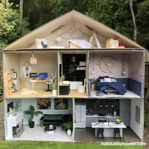 The winners of the Habitat by Resene Teeny House Competition show that size doesn’t matter when it comes to creativity and style. Decorators young and old entered the competition which saw them transform a cardboard dollhouse into teeny, tiny works of art using Resene colours and wallpapers. The cardboard teeny house became a blank canvas for a wonderful array of creative ideas with many designing their dream miniature homes.