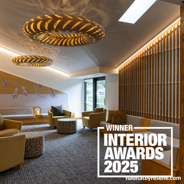 Winner of this year’s Community Impact Award, Harbour Hospice North Shore by Klein Architects featuring Resene Quarter Joanna and Resene Colorwood Ironbark on timber finished in Resene Aquaclear. Image by Mark Scowen.