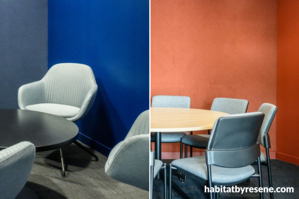 This meeting room brings a vibrant burst to the office space in Resene Noosa. Image by Simon Devitt.
