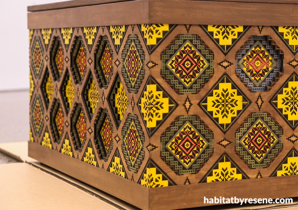 This project is finished in: Resene Colorwood Desert Yellow, Colorwood Red Pepper, Colorwood Emerald Green, Colorwood Matai, Woodsman Pickled Bluewood, Woodsman Earthsong and Resene Aquaclear.