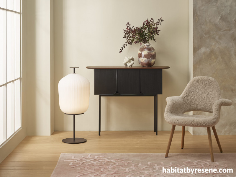Warm neutrals like Resene Creme De La Creme, Resene Courtyard, Resene Foundation, Resene Athena, Resene Tea and Resene Rice Cake are top paint colour picks for capturing a Warm Minimalism essence, but as with other minimalist looks, remember to include plenty of texture to keep this pared down aesthetic from falling flat. Use Resene FX Paint Effects Medium to create mottled wall effects and choose timber flooring in a warm colourwash stain like Resene Colorwood Bask to keep the surface looking soft and inviting while still allowing the natural beauty of the wood’s grain to show through. Finish the space with high-pile rugs or furniture in textured fabrics like boucle to increase the cosiness.