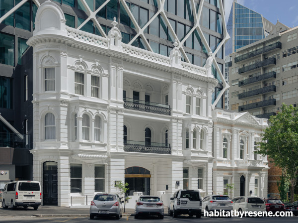 Using Resene colours, they experimented with ways to honour the building's heritage while providing character. "These historic street frontages were our canvas," Graeme says. "The new buildings behind the facades were the 'skyscape' of the heritage buildings, the latter being the 'hero' elements in the streetscape."