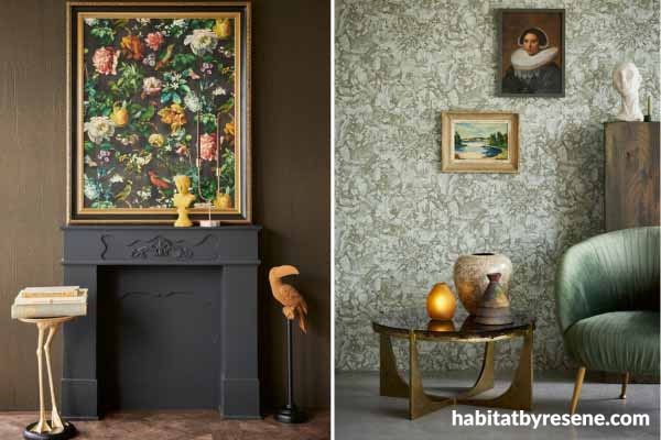 Try a lightly textured wallpaper from the Resene Wallpaper Collection or a classic floral design to increase the tactile or visual texture in your transitional design. Left room main wall wallpapered in Resene Wallpaper Collection E307333, right room main wall wallpapered in Resene Wallpaper Collection E307342.