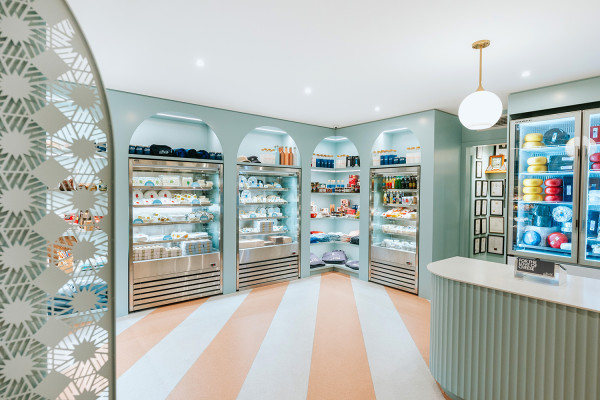 The finished result has been met with glowing reviews, with guests praising the décor, atmosphere and, of course, the cheese. “The blue exterior of the building is my favourite,” says Simon. “It draws people in and creates a vibe that’s not felt anywhere else.”