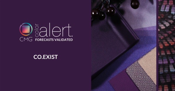 The aptly named colour emerges to embody co-existence with a deep valued, subtle chroma, and balance of red and blue. Co-Exist emerged from Color Marketing Group® meetings as a response to complexity and contradiction. It is a hue of balance, neither loud nor timid. It evokes compassion and concern without vulnerability, expressing quiet strength and purpose across design and aesthetics.