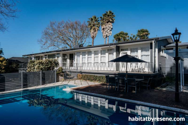This project uses Resene April Sun, Resene Black White, Resene Cheeky, Resene Dolly, Resene Oxley, Resene Rivergum and Resene Woodstock. Image Paul McCredie.