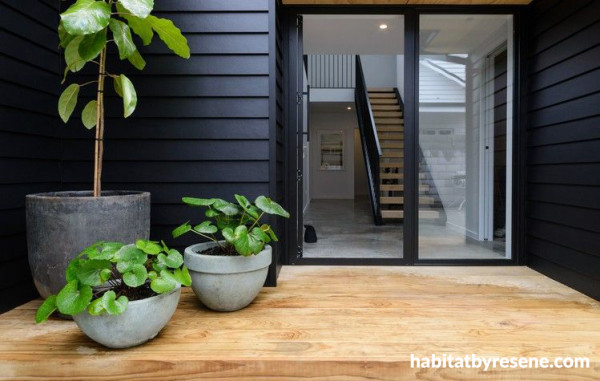 She uses it as an accent colour on landscaping elements in highly vegetated areas, rather than on exterior claddings. “It’s a nice backdrop and a nice feature, it works well with vegetation and gives it a bit of depth and drama.”