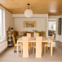 Light bounces around the dining room of the beachside property, painted in Resene Sea Fog.