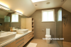 The en suite bathroom features his-and-hers sinks and showers.