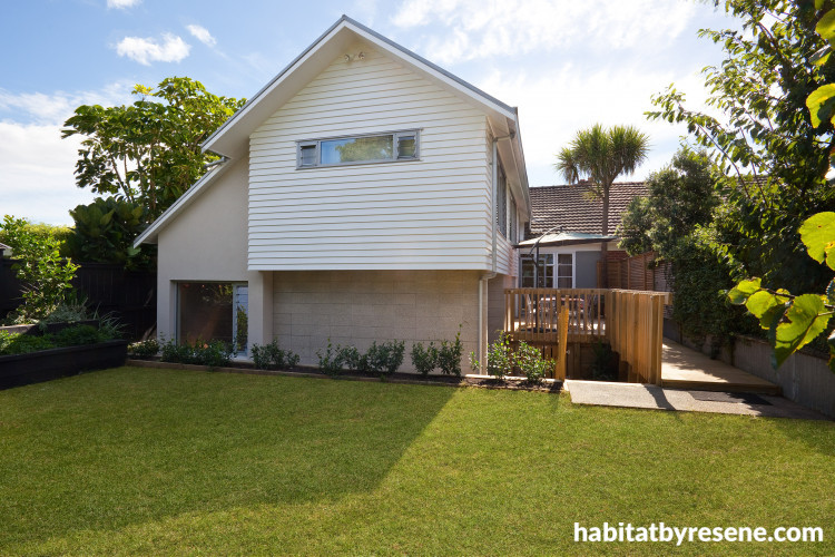 Although this is a city home, the beach across the road has exerted its influence - Esther admits that she chose Resene Tapa for half of the house's exterior because it reminded her of the changing colour of the ocean. And for the other half? The aptly named Resene Sea Fog.