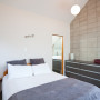 Concrete block walls give an "industrial chic" edge to the house's new extension. Soft white Resene Blanc walls provide balance, while bringing out the white flecks in the blocks.