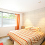 The pairing of orange and grey works brilliantly in this bedroom. Walls are Resene Blanc.