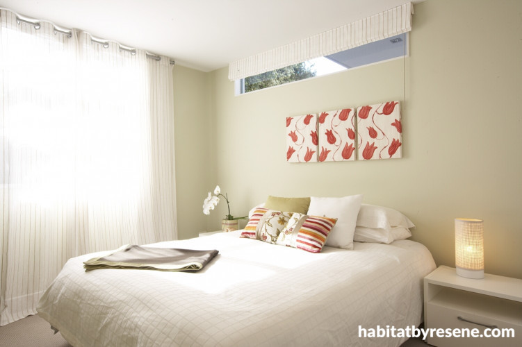 Both of the guest bedrooms are painted in soft blue-green shades, using Resene Pewter and Resene Zen.