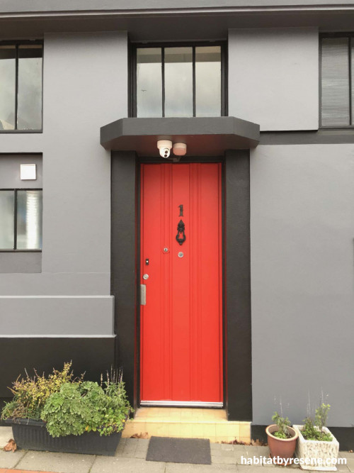 If you have an older home, it’s never too late to rediscover its character with a bold front door. A great example is this vibrant Resene Jalapeno door painted by Graham and Holly of Hawke’s Bay. After purchasing a 1956 Art Deco bank on one of the main thoroughfares in the town, the couple set to work masking 150 windows before painting their house in Resene Half Grey Friars with trim in Resene Black and adding the final touch with their bright red Resene Jalapeno front door. “I simply chose colours that I thought would be appropriate for such a large, grand, Art Deco building on a main thoroughfare,” says Graham. “It is a grand old building, and I wanted to give it some strength and presence on the street.