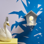 Trees and branches are a popular motif for walls, and here's a twist on the theme. Inspired by flax bush, the branches visually hold up a craft birdhouse filled with seed lights. It's a pretty way to keep the room softly lit at night time.