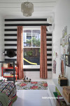 Talia used a broad striped Resene Black & White wallpaper as a feature wall in daughter Sabien’s room.