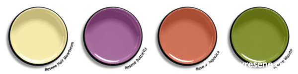 Look to spring and summer for inspiration. Make your walls sing with Resene Half Moonbeam and add colour on accessories and décor like vases, furniture and drapes in blooming shades like Resene Butterfly, Resene Japonica and Resene Wasabi.