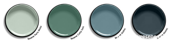Who says blues and greens clash? This duo are both inspired by nature and we always see them together, it’s just all about pairing the right ones. Start with a light base like Resene Paris White and add depth with Resene Cutty Sark, Resene Gothic and Resene Atomic.