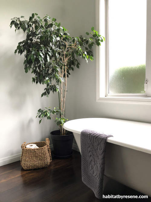Resene Half Ash in a guest bathroom works well with the natural light and gives the room warmth and softness.