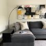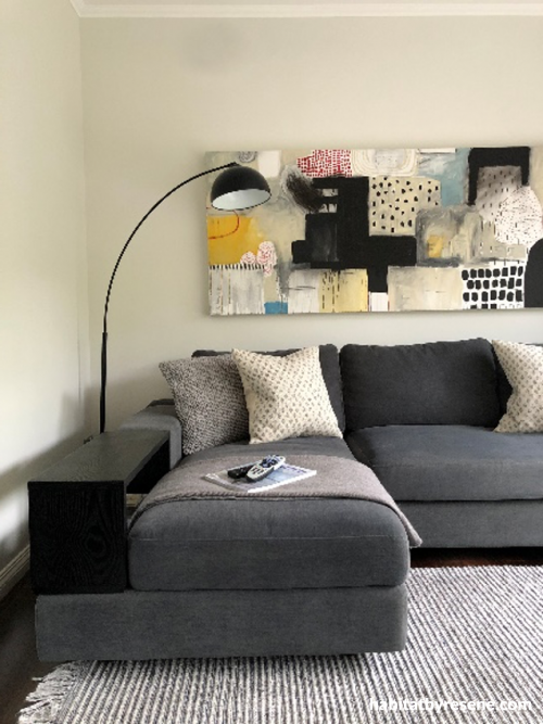The simple palette, which includes darker and lighter walls, also lets her art collection shine. "We buy what we love and then figure out where we'll put it. I'm especially enamoured with our gallery wall, which includes a couple of pieces by our daughters".
