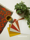 Kick off the spice trend in your home with a playful wallpaper feature like Resene Wallpaper Collection 90564. Use it with flooring in Resene Poured Milk, a sofa in Resene Bittersweet, pot plants and stools in Resene Sambuca and some lush greenery break up the intensity of the wallpaper.