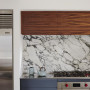 The sophisticated sea and sky colour palette continues in the kitchen, with Resene Tuna on the cabinetry. “For the kitchen the clients had chosen a statement marble and walnut finish. We wanted to bring colour into the kitchen cabinetry so chose Resene Tuna for its deep distinguished grey with undertones of blue which worked really well with the marble veining.”