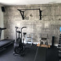 The gym’s feature wall is a talking point in Resene Wallpaper Collection 445503 with trim in Resene Triple Alabaster.