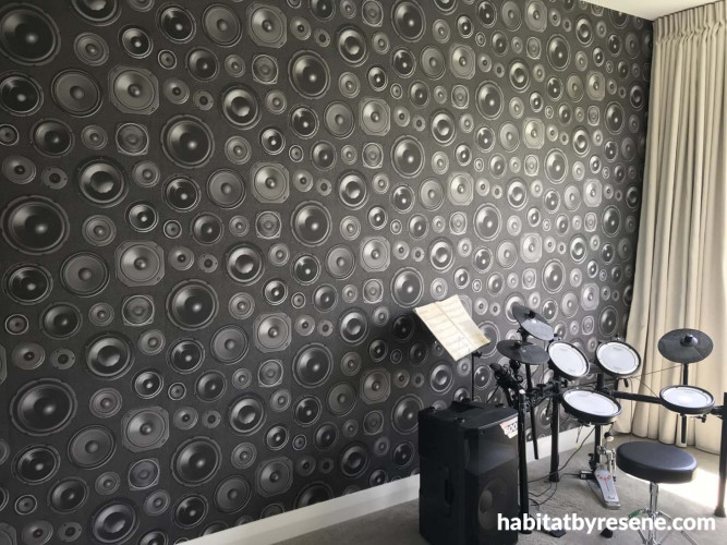 Jack’s favourite room, the music room, has an incredible feature wall in Resene Wallpaper Collection J966-09 and the trim is in Resene Triple Alabaster. Resene has a wide range of novelty and textured wallpapers perfect for kids and adults alike. Take a look at the latest Resene wallpapers.