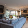 The family-friendly kitchen and dining space flows effortlessly into the lounge with Resene Double Sea Fog walls and ceiling and trim in Resene Triple Alabaster.