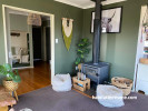 The living room has become a family favourite painted in Resene Kelp. Jinel spied the shade on the Resene Facebook page. The trims and ceiling are in Resene Black White.