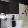 The bathroom is the epitome of sophisticated elegance with Resene Half Foundry on the walls.