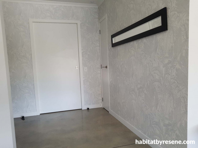 “The wallpaper in the entrance matched the Resene Half Iron on the walls perfectly.”