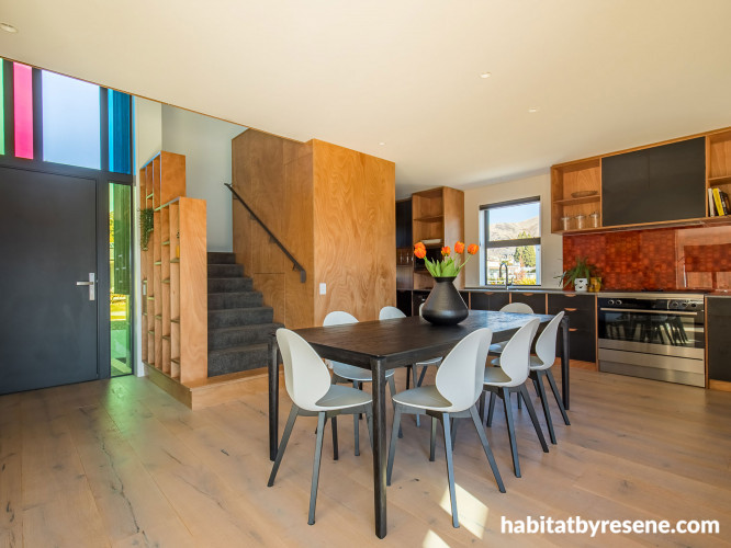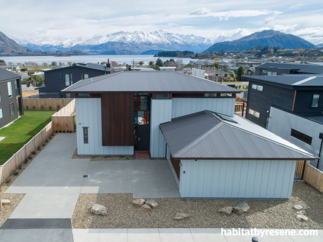 The property developer designed the house plots so that both the front and back houses on the street would have a view of Lake Wanaka."When you open the front door, you can see right through the house and out the other side," says Jan.