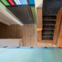 This entrance creates a warm welcome using Gaboon plywood finished with Resene Aquaclear Satin. The collection of stained-glass windows at the entrance were inspired by the plumage of the alpine parrot the kea.