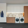 Tim & Arthur’s winning space features a creative doodle wall painted by a local Auckland artist Chippy on the Resene Black White walls. They created a minimalist workspace with a functional tool board. The team brought wooden accents from their kitchen into the cabinetry of the laundry, creating a warm and welcoming space.