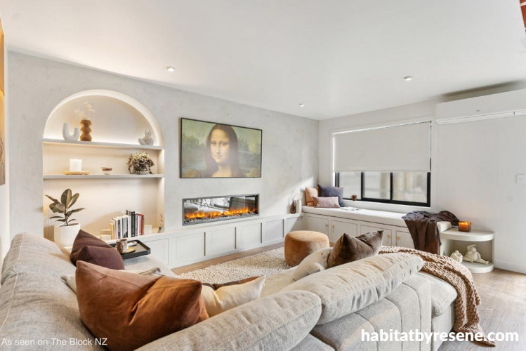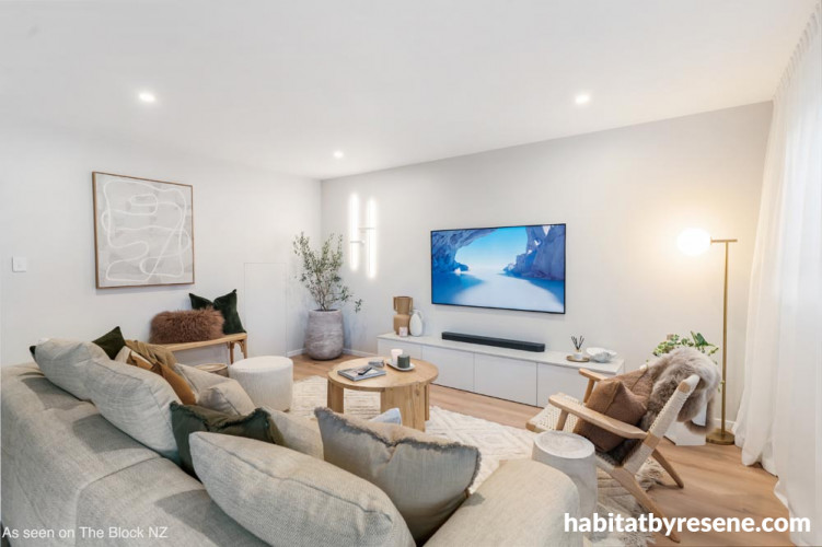Emotions have been high this week on Three’s The Block NZ as teams are starting to feel the exhaustion and fatigue set in. The days have been long, prompting some teams to think about their loved ones back at home. Nevertheless, the teams power through to build another day, and it’s living room week! Colour palettes including Resene Double Merino, Resene Half Sea Fog and Resene Quarter Foggy Grey impress the judges.