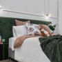 The judges were blown away with Janah & Rach’s sophisticated room and loved the story it told, dubbing it ‘every teenage girl’s dream.’ Judge Ann-Louise scored the room 8/10 and loved the use of green fabric headboard against the feature wall in Resene Quarter Joss. The color pallete ties in with the brass details of the light fittings to create a modern version of old age glamour. “I’m always conscious we need to introduce those extra little details into these modern houses and they’ve done that beautifully,” says Ann-Louise. Lauren thought the colour on the walls was gorgeous, and would evoke a soft emotional response when people walked in.